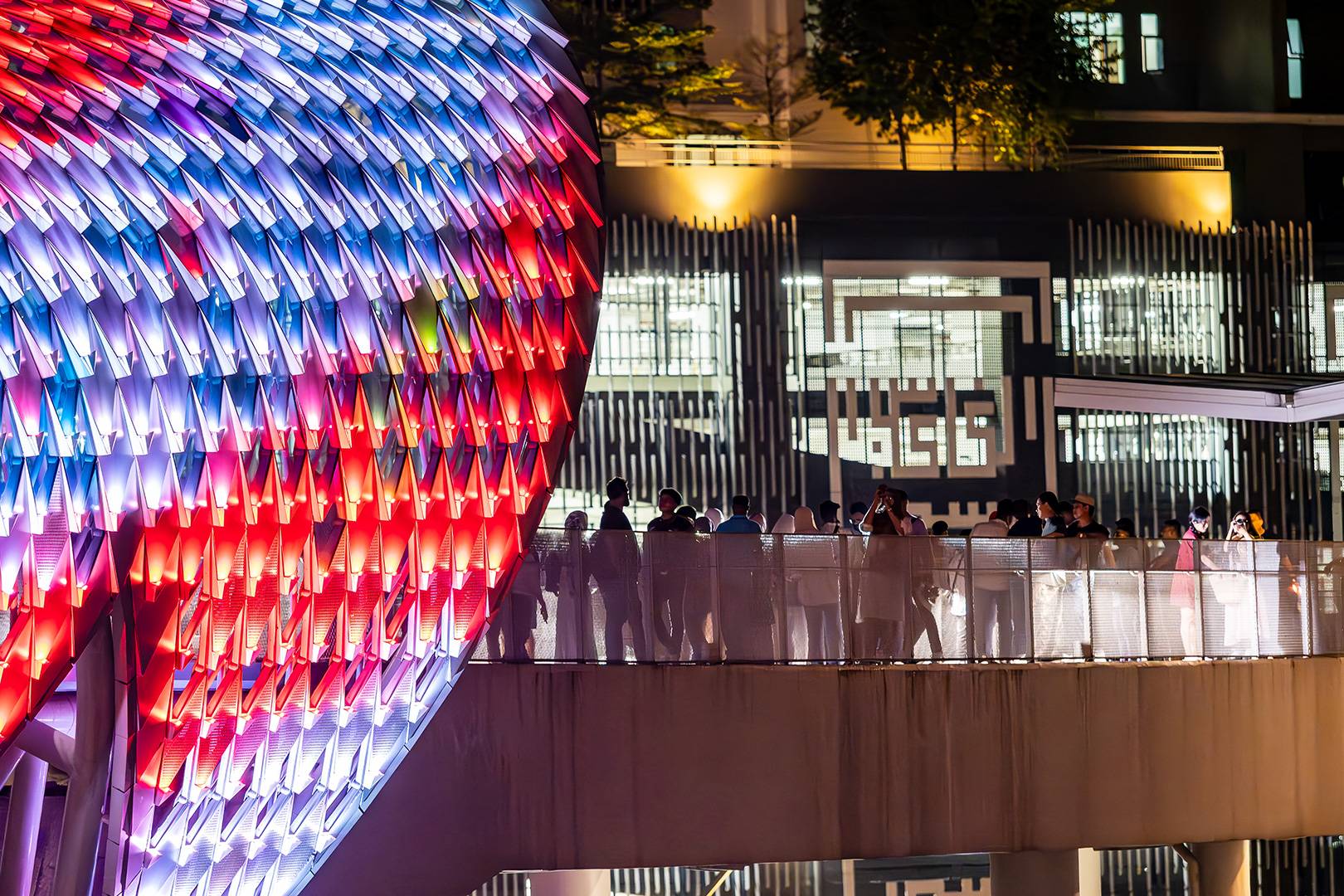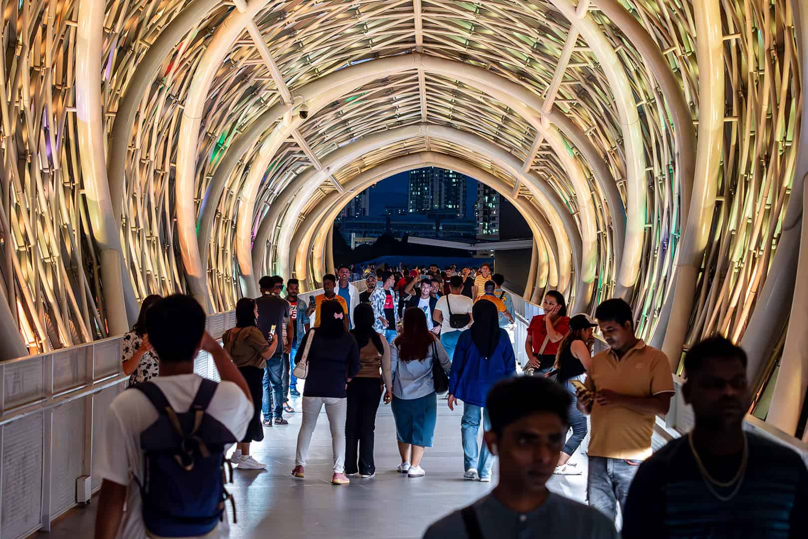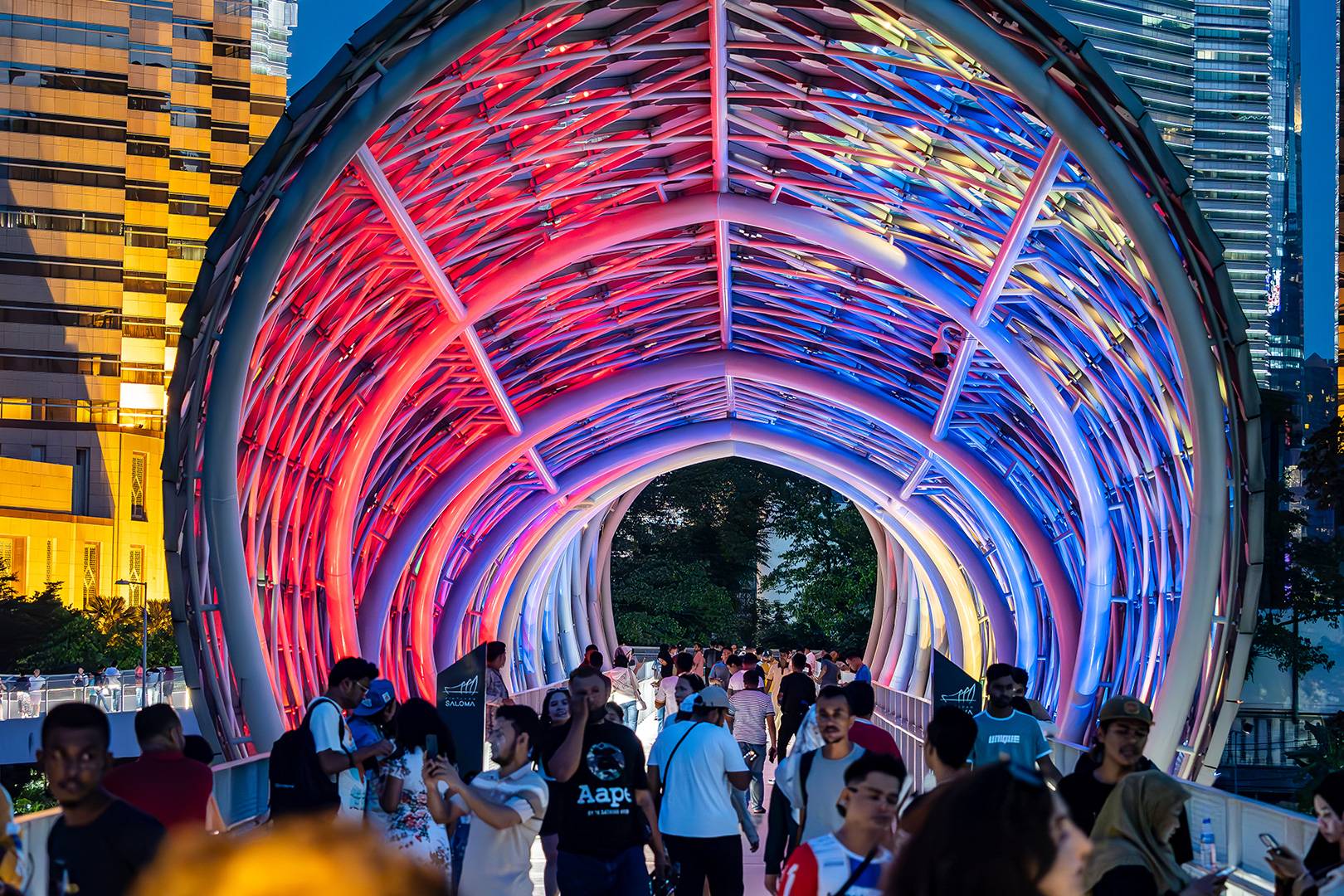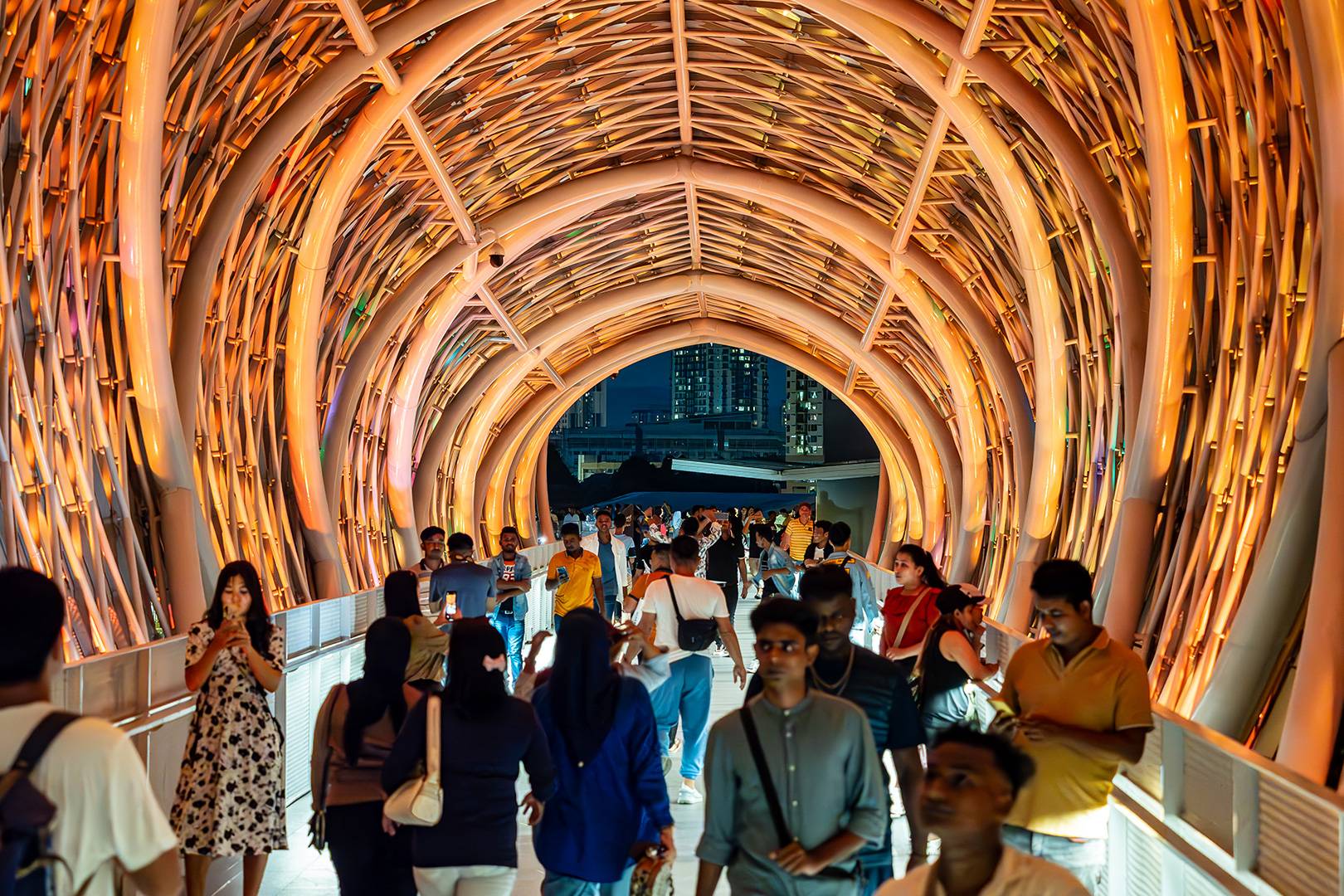 The design, inspired by the “Sireh Junjung” — a traditional arrangement of betel leaves used in Malaysian weddings — is a tribute to Malaysian culture. At night, the bridge transforms into a futuristic spectacle, lit up by thousands of LED lights that constantly change color. That’s one of the main reasons it’s become such a popular Instagram hotspot.