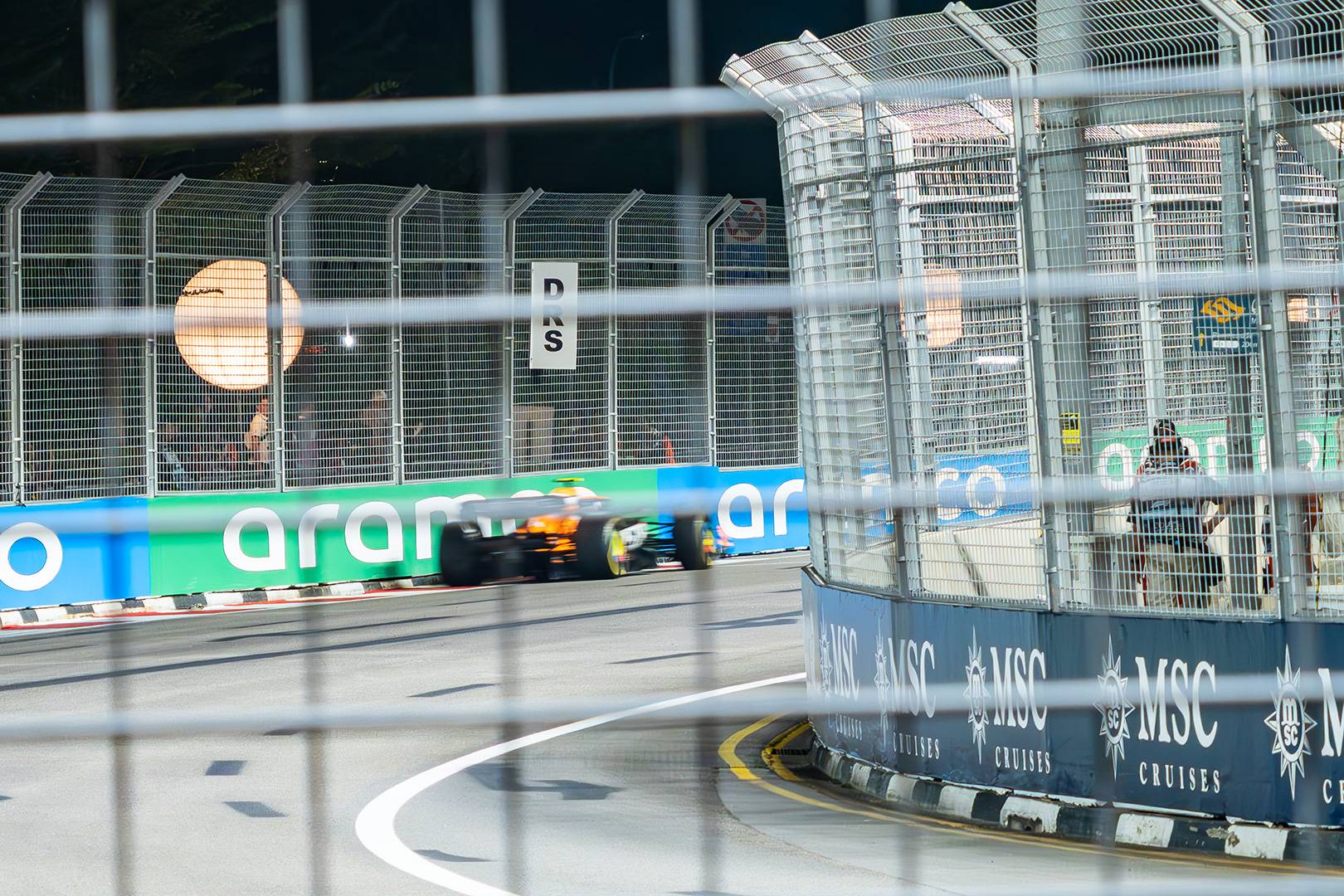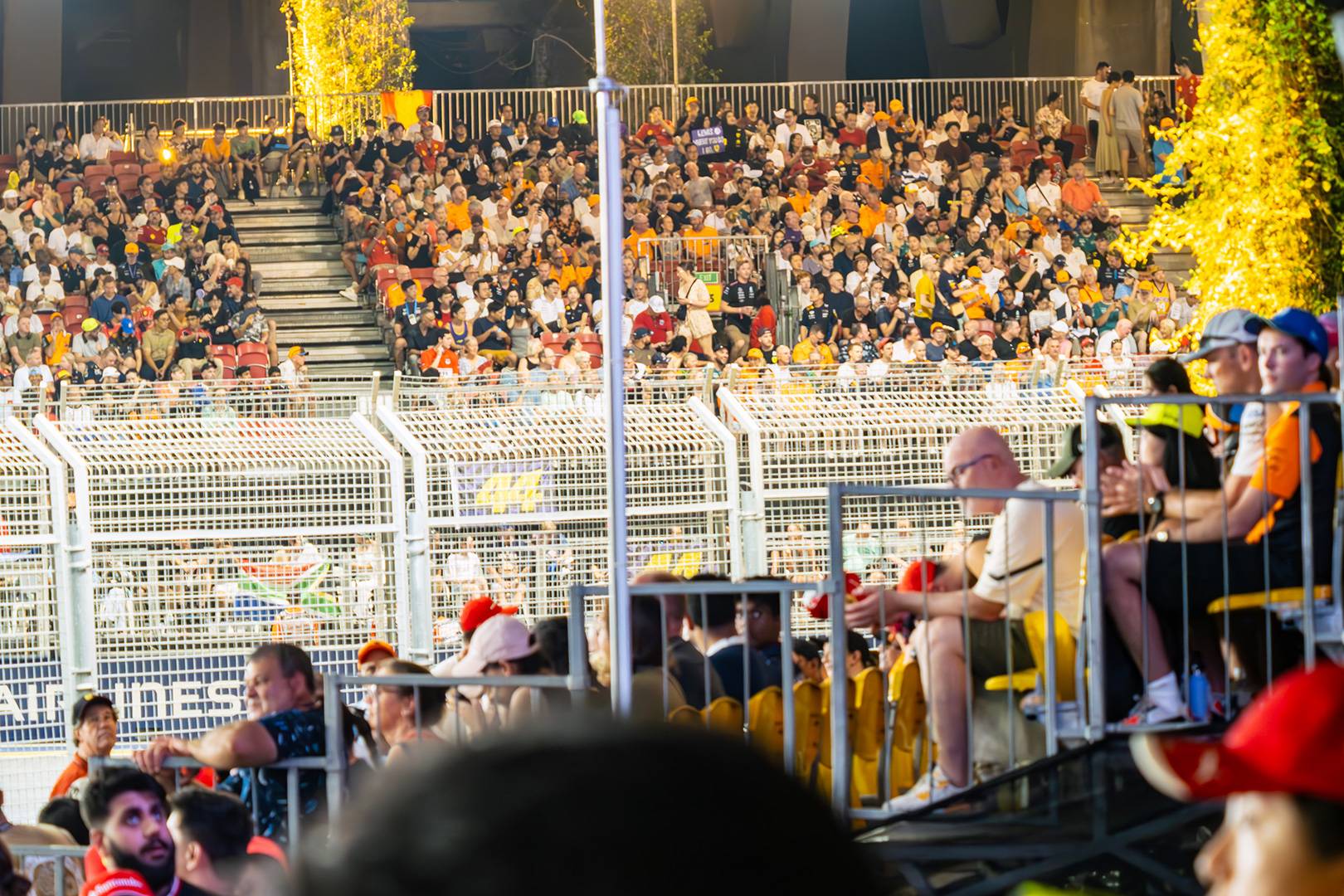 The race started exactly at the appointed time, despite some uncertainty beforehand about possible rain. Everyone found a spot, and because I had stayed too long at Kylie’s, I ended up being a bit late. All the viewing platforms in the bend section after the start were already packed. I just managed to find a spot by some stairs leading up to one of the platforms. It turned out to be a good move because I had a great view of the cars entering the bend section after the start from the straight. It was a fantastic start, and the first few laps were quite exciting. But, as always, the Singapore GP is mainly a long procession. It was a cool race and very special to experience for myself. Lando Norris won the race convincingly in the end, with Max Verstappen in second place, 20 seconds behind.