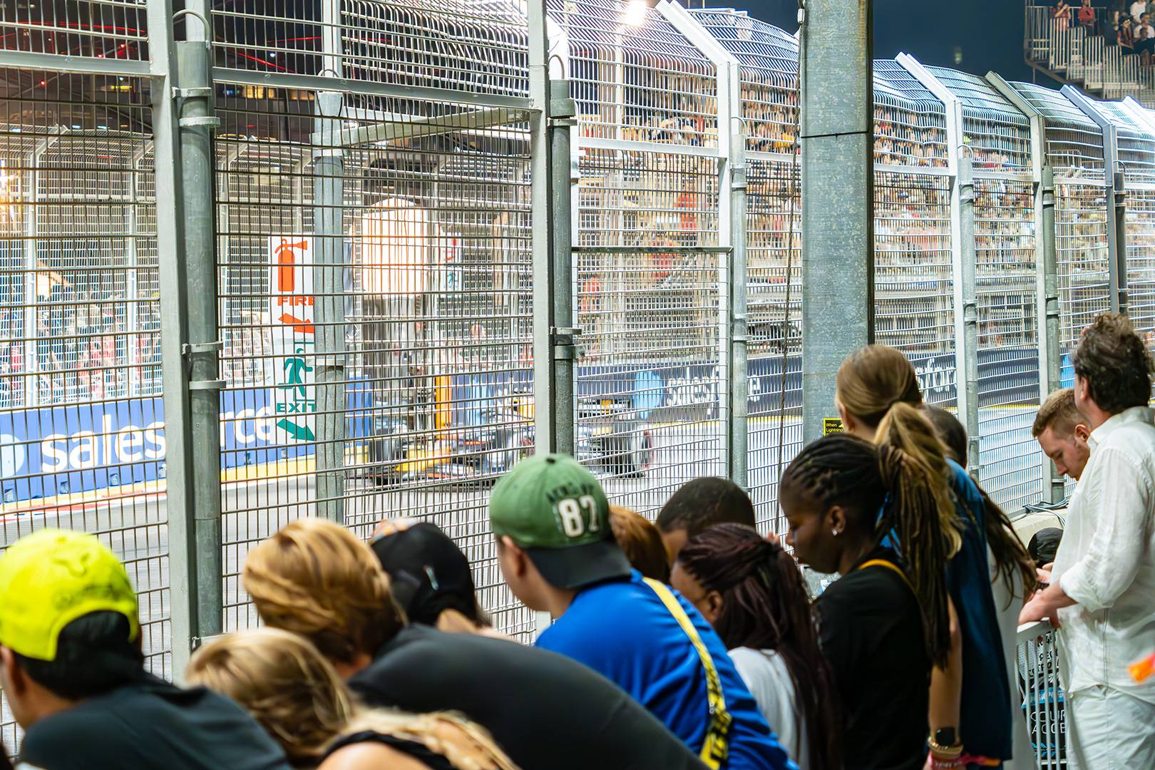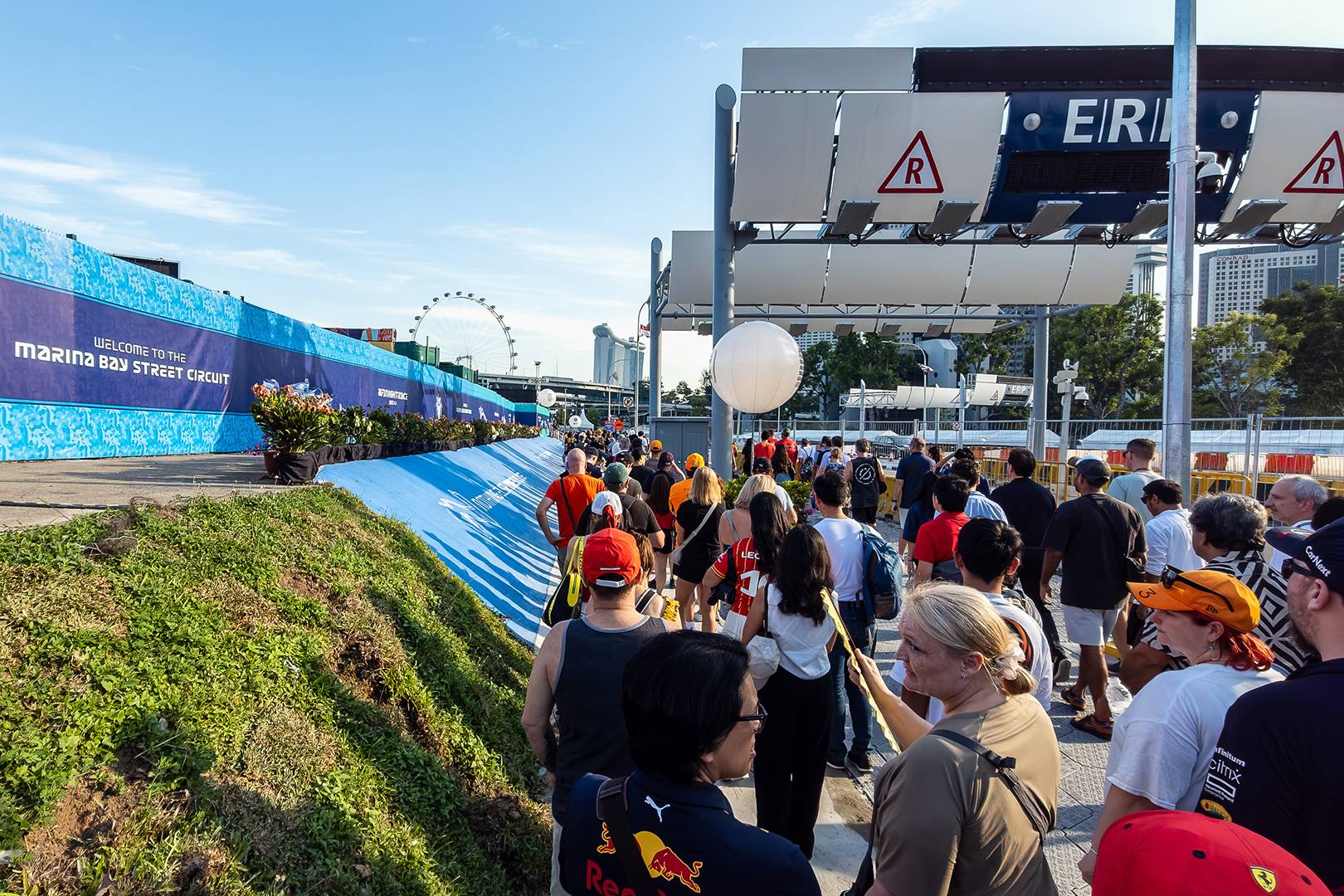 The Singapore Grand Prix has multiple entrances (gates), often located near the metro station where you get off. This is a convenient way to get all the spectators to the right places. In many cases, your ticket gives you access to a specific zone, and the different zones are each accessible through their own gates. The correct gate is printed on your ticket. It’s simply a matter of taking the right subway and getting off at the correct station.