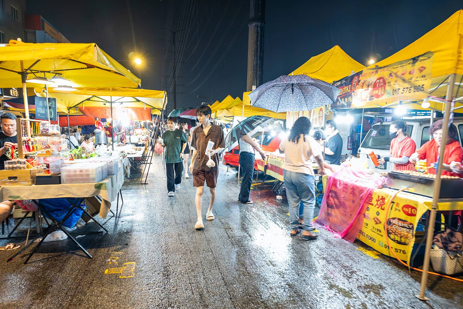 We arrived during a heavy rainstorm, which — unlike the usual short bursts we’re used to in KL — lasted a bit longer. We were still a bit unsure on the way there, wondering if the market might be canceled. But when we arrived, it was already buzzing. Rain or shine, the market’s always open.