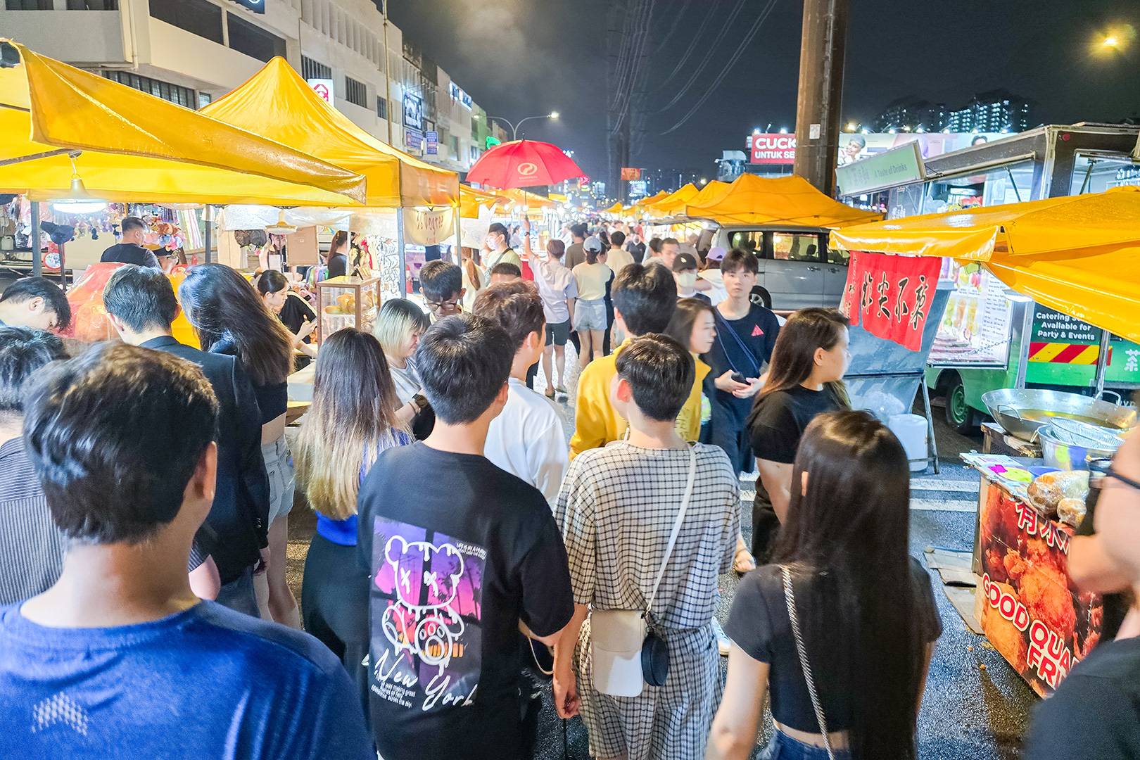 Since the market only opens once a week (every Wednesday evening from 5 p.m. to midnight), it can get pretty packed, especially around dinner time. From 7 p.m. onwards, you might find yourself walking shoulder-to-shoulder with others, and there are often lines at the more popular stalls. These are usually the new ones or the ones selling something a bit unique, like Tiramisu House or satay made with pork or Wagyu beef — not super common in Malaysia. Taman Connaught is also one of the few non-halal night markets in Kuala Lumpur. The best time to go is around 7 p.m., when the vibe is at its peak and everyone’s buzzing. Once it gets dark, it’s also the perfect time to snap some beautiful photos.