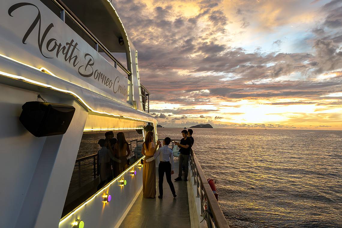 If you are already staying at The Pacific Sutera Hotel or The Magellan Sutera Resort, it is just a few minutes’ walk to Sutera Harbor. Make sure you are at the harbor gate (at the desk / “Registration & Boarding Point”) no later than 17:15 to board the boat. If you are late, you risk missing the boat. The cruise lasts from 17.30 to 19.30.