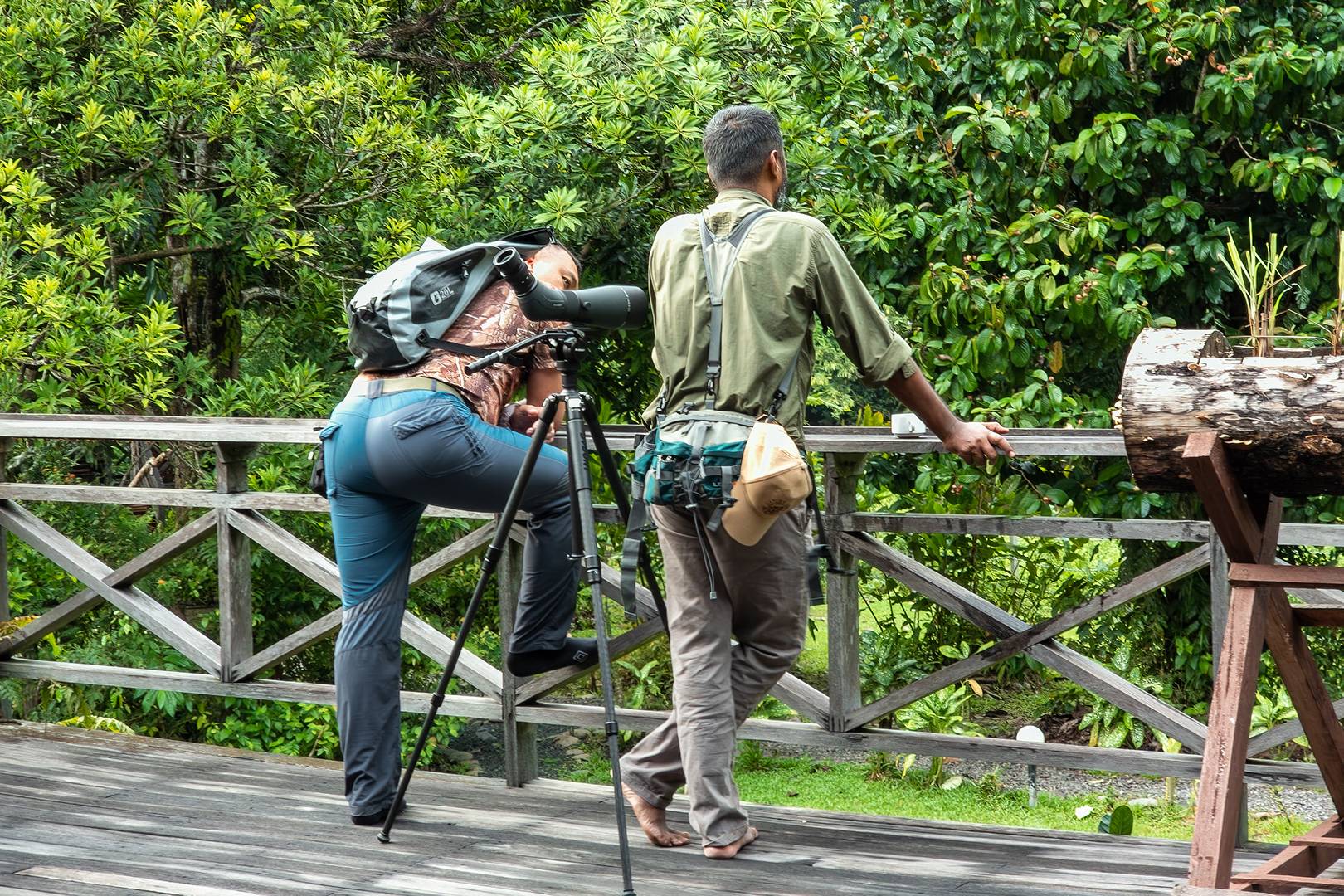 It’s no surprise you see bird watchers lugging around massive half-meter lenses on tripods to get sharper shots. We’ve been photographing for years, often in the jungle, and we’ve sometimes needed help from the guide just to get a sharp photo — especially during night walks. Not using flashlights or anything, just the beam from the guide’s torch indirectly lighting up the animal.