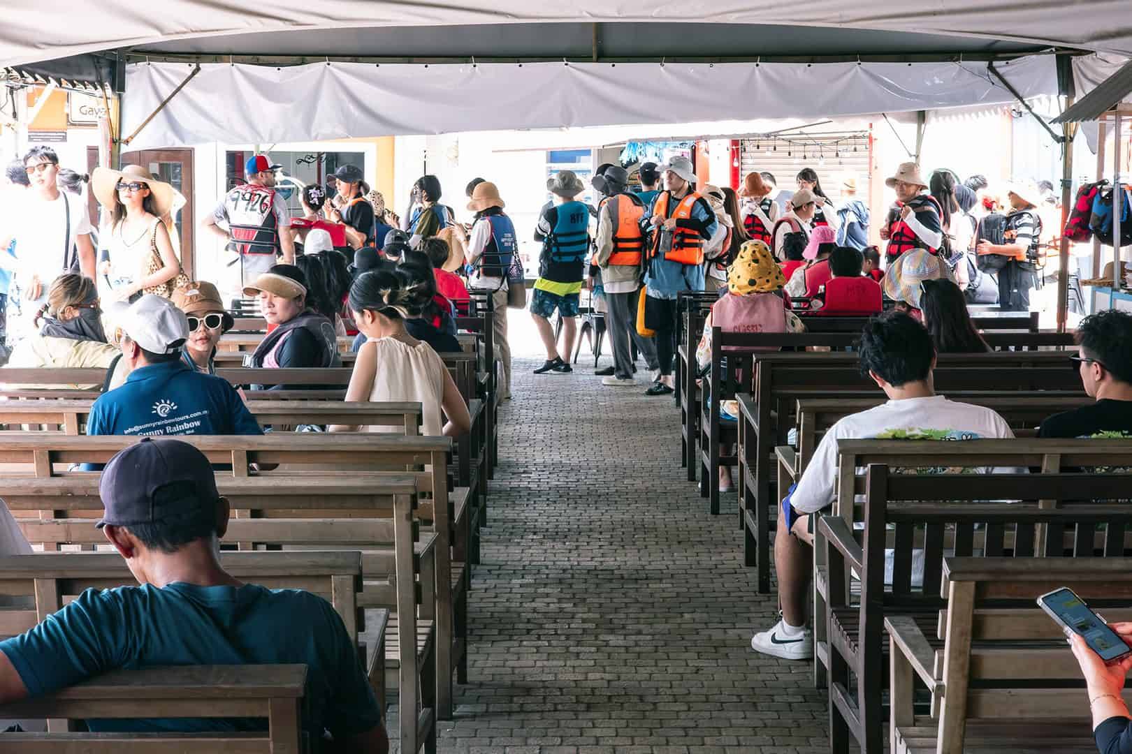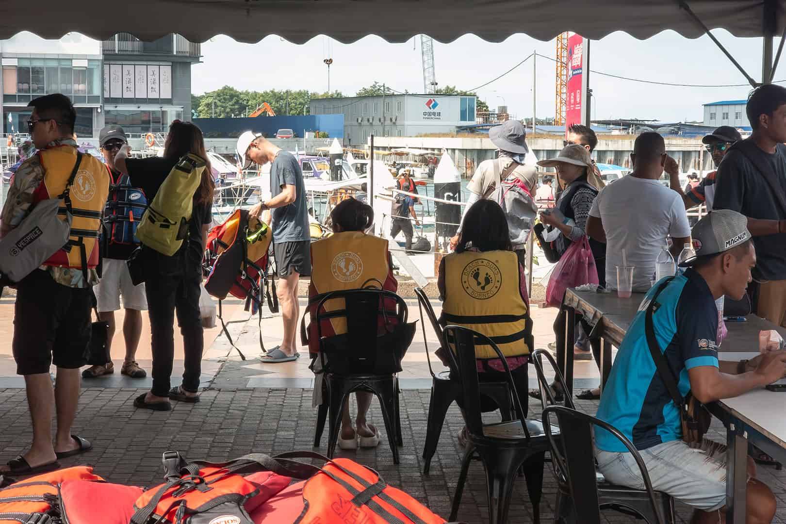 After getting your official ticket, you’ll be directed to the boat coordinator (they usually come to you). You’ll receive a handwritten ticket with your boat time and island(s). You might need to wait a bit for the boat to fill up. Once it’s time, you’ll get a life jacket and line up to board.