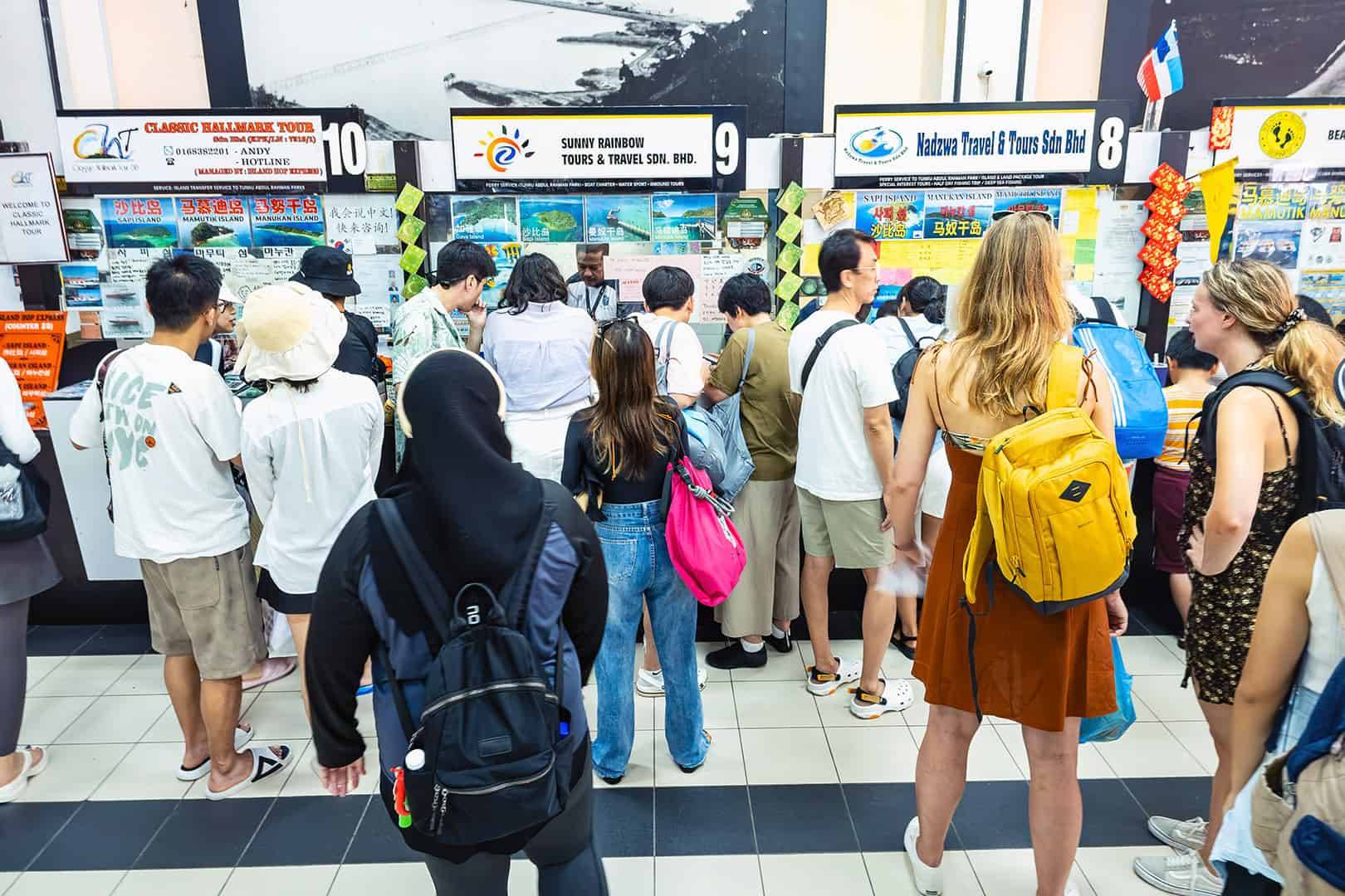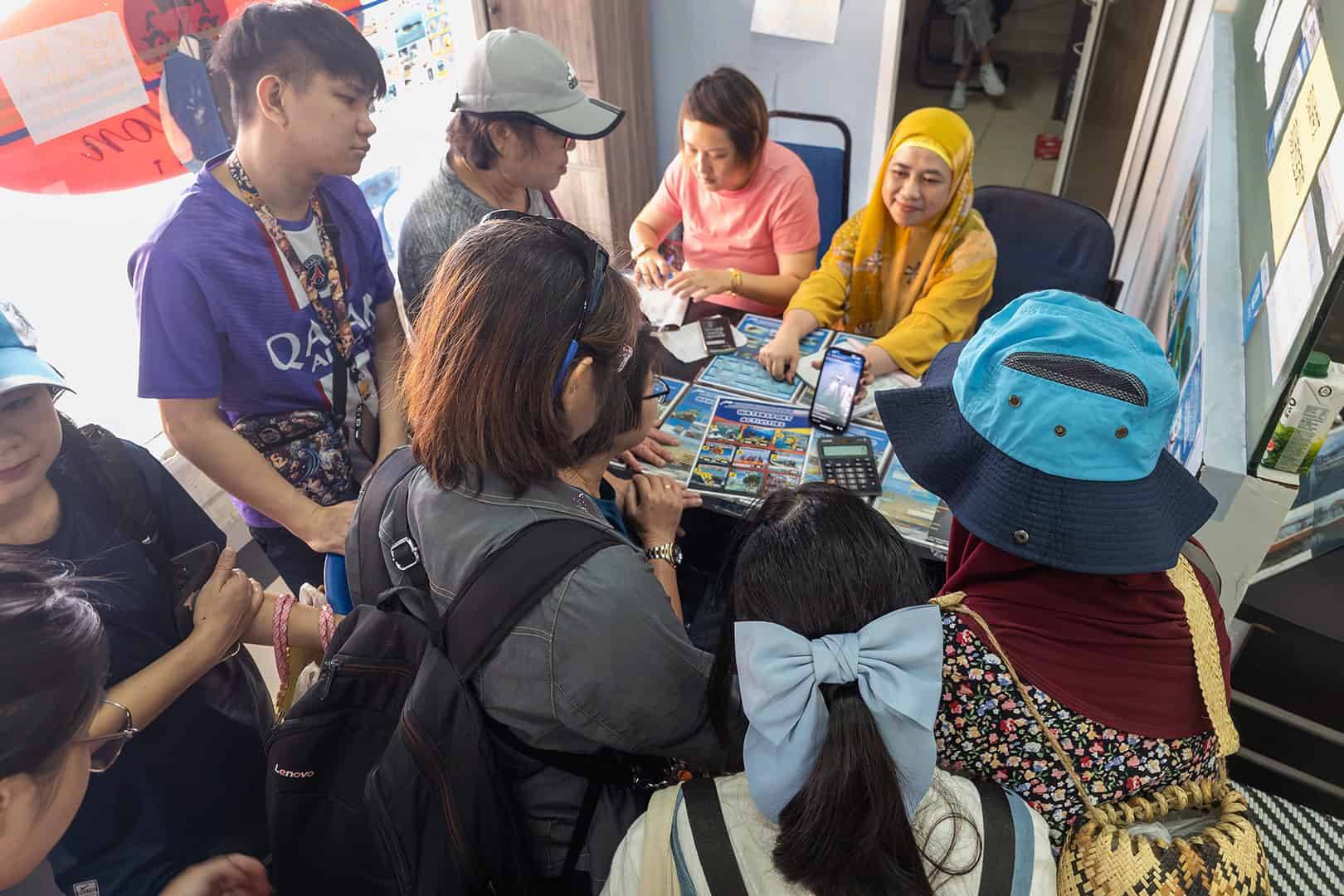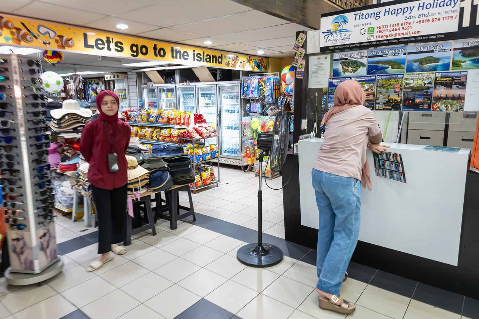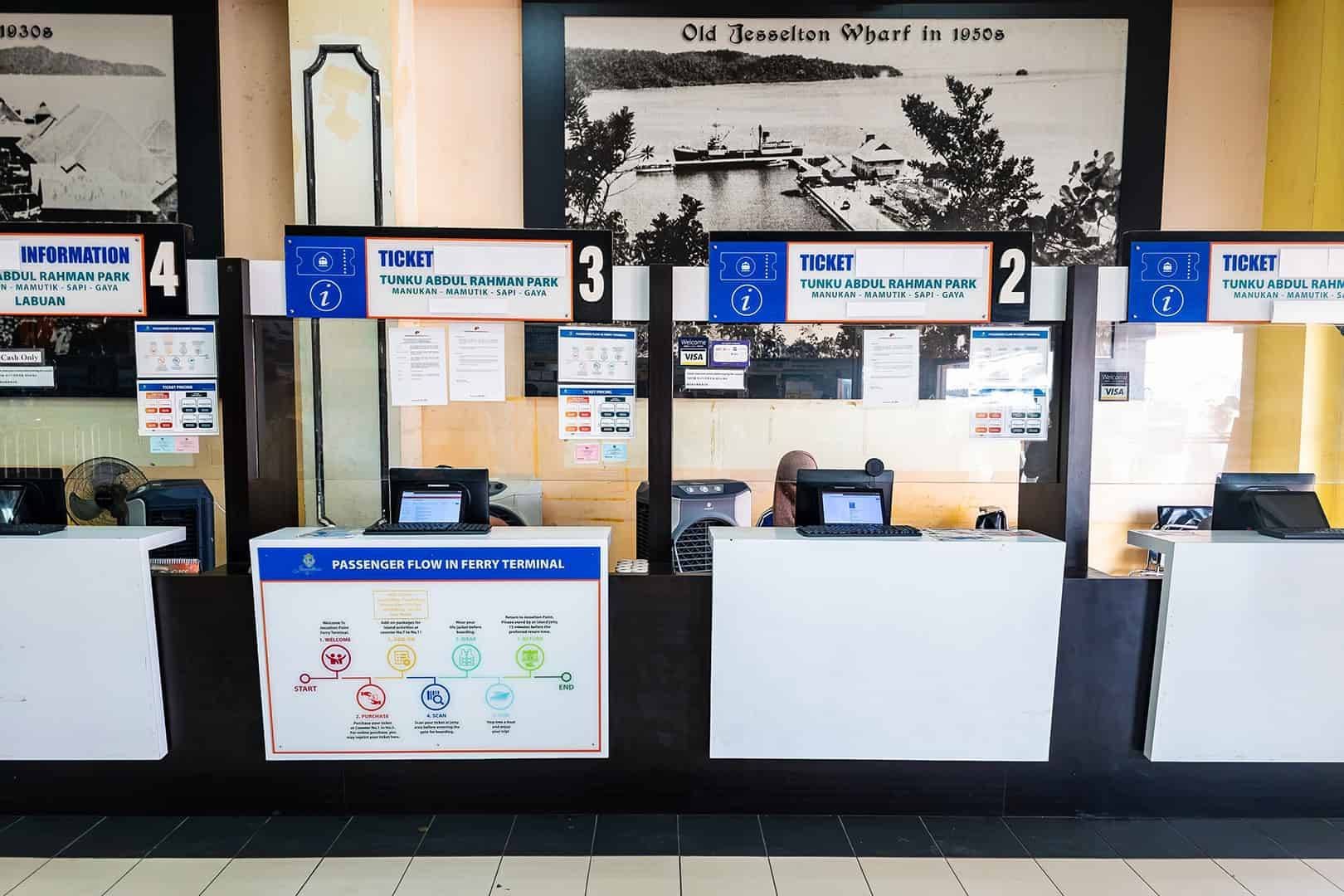 As you enter the terminal, you’ll see a building with several ticket counters on your right. That’s where you buy boat tickets. Besides counters for TAR trips, there are also ones for snorkeling tours and tickets to other islands like Labuan and Pulau Tiga.